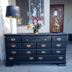 12 Drawer Solid Wood Dresser By Meredith Distinctive Furniture - Black With Gold $350Pico Rivera, CA