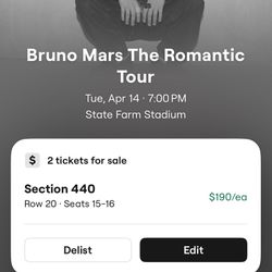 Zach Bryan 2 Tickets$300Arrowhed Farm, CA