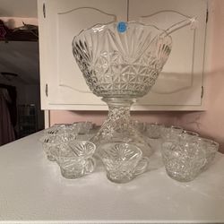 All Glass Punch Bowl Set With 12 Cups $10Highland, CA