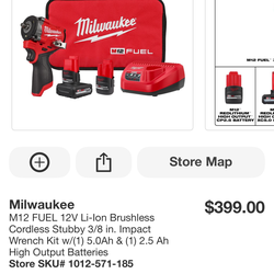 Milwaukee 3/8 stubby impact wrench kit$260San Bernardino, CA