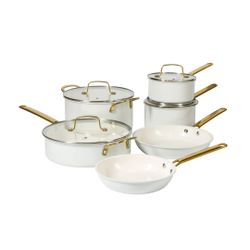 MARTHA STEWART 10-Piece Nonstick Pots and Pans Cookware Set with Gold Handles (Linen)$90San Bernardino, CA