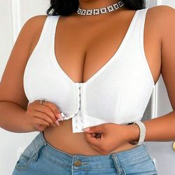 Plus Size Solid Color Casual Comfortable Front Closure Bra- White$12Hesperia, CA