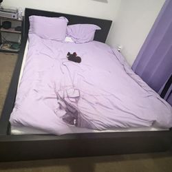 Modern Queen Bed Frame – Black/Brown Wood w/ Upholstered Headboard$550San Bernardino, CA