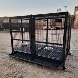 New! 43” Large Heavy Duty 2-Tier Dog Cage , With Removable Center Divider , Foldable No Tools Required $335Hesperia, CA