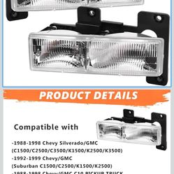 2Pcs Headlights Assembly compatible with 1 OBS Chevy Silverado GMC 1 3500 Suburban,1 Blazer,1 Tahoe Headlamp, Replace $40Hesperia, CA