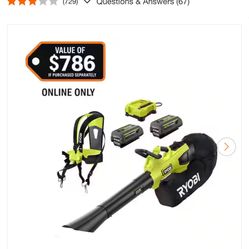 RYOBI 40V HP Brushless 100 MPH 600 CFM Cordless Leaf Blower/Mulcher/Vacuum Kit$140Fontana, CA