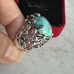 Vintage 925 Sterling Silver , Designer Shube Genuine Oval Turquoise Ring, Size 6 , Hallmarked STERLING w/$ Markers Mark$32Victorville, CA