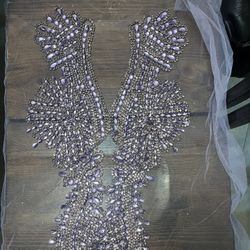 Exquisite Rhinestone Appliqué Crystal Beaded Lace Patches Bridal Set Sash headpiece Bodice Accessories $30Victorville, CA