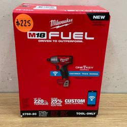MILWAUKEE 2759-20 M18 FUEL W/ ONE-KEY 1/2” IMPACT WRENCH W/ PIN DETENT (TOOL ONLY).$225Rialto, CA