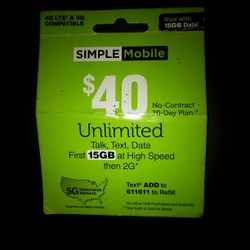 Simple Mobile No-contract 30 Day Plan$40Visalia, CA