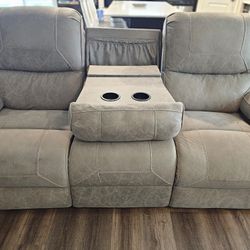 Gray Couch And Loveseat With Rocking Chair Leather That All Recline$1,000Tulare, CA