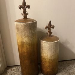 Rustic Heavy Ceramic Set Of Two Vases With Metal Lids$45Dinuba, CA