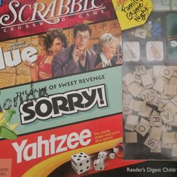 Family Game Night Book & Game Set [Scrabble, Clue, Sorry, Yahtzee] 4 Games In 1
