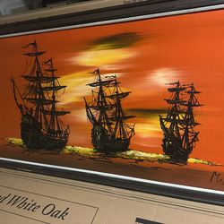 VANGUARD STUDIOS 1960'S MID CENTURY PIRATE SHIP PAINTING DRIP ART 52"X28"$400Visalia, CA