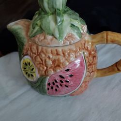 Vtg Ceramic Earthenware Slip fg Teapot Art Table Kitchen Fruit$23Tulare, CA
