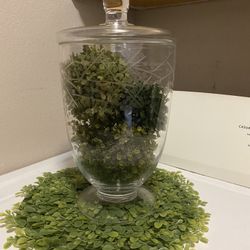 Beautiful Glass Vase With Lid And Greenery Inside$30Dinuba, CA