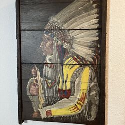 Native American Chief Painted On Grape Tray Great Colors 36 X 24”$99Visalia, CA