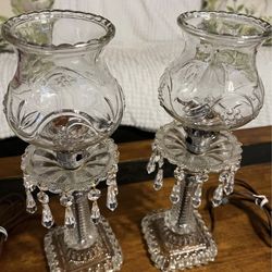 Era 1950’s - 1960’s Two preowned antique/vintage clear glass and crystal night stand lamps$150Exeter, CA