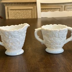 Vintage Milk, Glass, Cream And Sugar, West Moreland Maple Leaf Pattern$20Visalia, CA
