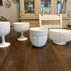 Vintage 1970’s Milk Glass Vases Oak Leaf Pattern Set Of Four $89Visalia, CA
