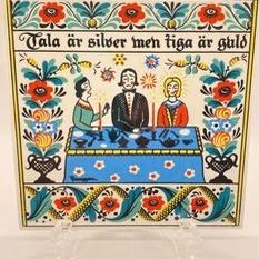 Vintage Berggren Shelton Trayner Talk is silver, but silence is golden Swedish Folk Ceramic Tile$18Visalia, CA