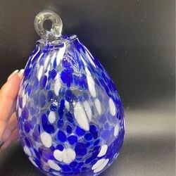 Ron Hinkle hand blown blue and white crackle glass teardrop Art Glass ~ No Sticker$20Visalia, CA