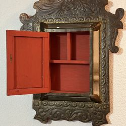 Vintage Mirrored Metallic And Wood Wall Hand With Small Shelves $129Visalia, CA