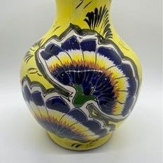 Vintage 9” Talavera Castillo Mexico Vase Hand Painted Ceramic Pottery Yellow Blue Flower 9”T$23Visalia, CA