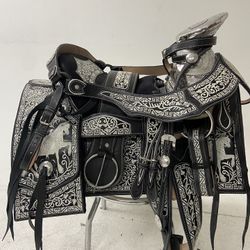 Nueva Montura Charra Bordada Con Herrage Y Fuste Plateado Completo $1,550Tulare, CA