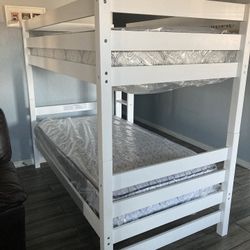 New Twin/Twin White Wood Bunkbed With Mattresses Included!$550Lindsay, CA