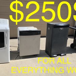 “$250 For ALL” -1 Kenmore Gas Dryer, -1Frigidaire Dishwasher, -1 MasterBuilt Dehydrator, -1 Charbroil BBQ Grill $250Visalia, CA