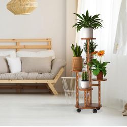 5-Tier Rolling Plant Stand with Wheels - Indoor/Outdoor Pine Wood Plant Shelf, 50kg Load Capacity, Dark Brown Multi-Level Flower Pot Holder for Garden$35Visalia, CA