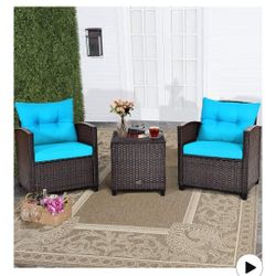 3 Piece Patio Furniture Set, Wicker Bistro Conversation Set w/ 2 Cushioned Armchairs & Glass Topped Table, Outdoor Rattan Sofa for Porch Balcony Pools$135Hanford, CA