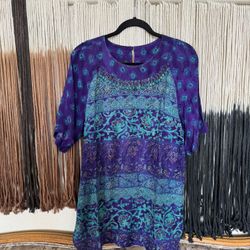 Purple and teal Carole Little boho long line blouse with beaded details; perfect condition$20Fowler, CA
