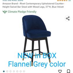 Amazon Brand - Rivet Contemporary Upholstered Counter-Height Swivel Bar Stool with Wood Legs, 37"H, FLANNEL GREY 120 Each Or Best Offer