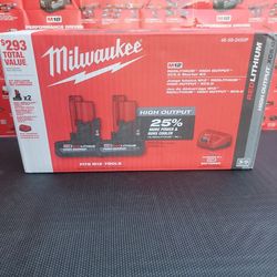 MILWAUKEE M12 12V LITHIUM-ION XC HIGH OUTPUT 5.0 AH BATTERY (2-PACK ) STARTER KIT WITH CHARGER$165Visalia, CA