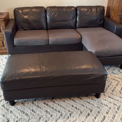 Faux Leather Couch And Storage Ottoman$20Murrieta, CA