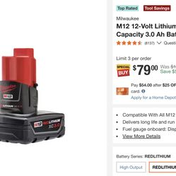 2x M12 12-Volt Lithium-Ion XC Extended Capacity 3.0 Ah Battery Pack (2-Pack)$70San Diego, CA