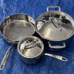Faberware Millennium 18/10 Stainless Steel, Copper Bottom 3-pieces With 2 Lids $12La Costa, CA