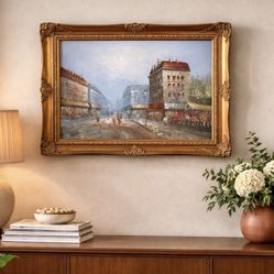 Large Framed European Street Scene Painting Ornate Gold Frame$200Escondido, CA