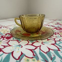 Amber Depression Glass Tea Cup And Saucer $10San Diego, CA