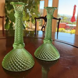 Uranium Hobnail Westmoreland Diamond Cut Candle Sticks$175San Diego, CA