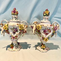 Antique Cherubic Lidded Porcelain Urns - von Schierholz/Handmalerei$600San Diego, CA