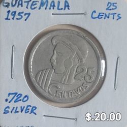 1957 Guatemala 25 Centavos Silver Coin $20Oceanside, CA