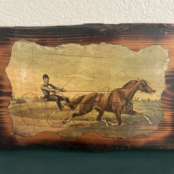 Antique Art Print On Wood •1855 Pocahontas a Celebrated Pacing Mare• Western Decor $40Temecula, CA