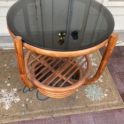 Vintage Smoky Glass Top Round Bentwood Rattan Bamboo Side Table $150San Marcos, CA