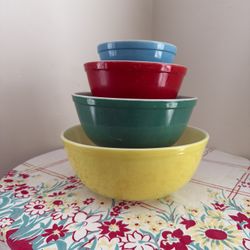 Antique Pyrex Milk Glass Primary Nesting Bowl Set $130San Diego, CA