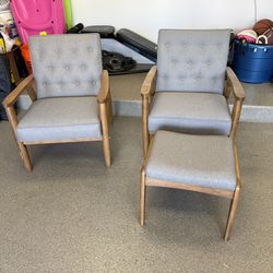 Two Baxton Studio Sorrento Mid-Century Retro Modern Fabric Upholstered Wooden Lounge Chair, Grey And Footstool$100San Diego, CA