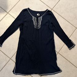 Women Mini Dress XL Navy Blue Embroidery Long Sleeve Pullover Swim Cover$17Poway, CA