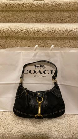 Coach Black Leather and Logo Fabric Small Hobo. Perfect Condition. This purse is great for clubbing, fits under your arm. Paid $335.$55San Diego, CA